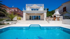 This brand-new, south-facing villa (520 m²) is located on the sea front on a quiet road, enjoying stunning panoramic views of the islands and mainland to the south and the old town and the prestigious Frapa yacht marina to the South West. It is only a 30 minute drive from Trogir/Split Airport. The town has many restaurants and several of these are open throughout the year together with the local shops and market. The property is less than 5 mins walk from the local shops and restaurants.