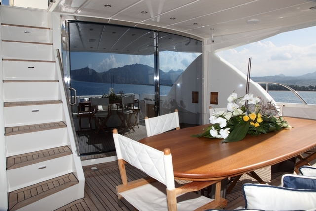 Modern hull lines and a strong character are what distinguishes this yacht. Accommodating up to eight guests in its very spacious cabins, it also has many daytime solutions. Dining space and salon are very well set up, allowing all guest to relax and entertain while cruising or moored