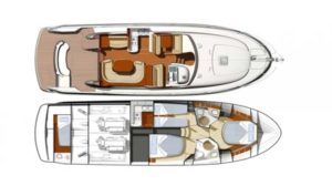 The interior layout consists of a large owner’s stateroom forward complete with queen-size bed and private head and shower. There is an additional stateroom with adjoining head to starboard and a third stateroom to port, both of which can accommodate an additional two guests. Powerful Cummins engines will take you to the remote islands in Adriatic within blink of an eye.